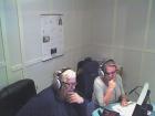 Programlederne Mona Kristensen og Finn Arne Steffensen trives i studio under konkurransen - i trivelig passiar med lytterne..
