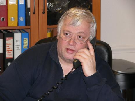 En selvsagt del av førjulssendingene i Nærkanalen har vært julehilsningene fra det offentlige og næringslivet i området vårt. Og det skulle bare mangle; disse populære innslagene kommer også i årets sendinger. På bildet sitter Finn Arne Steffensen med en potensiell annonsør på tråden..